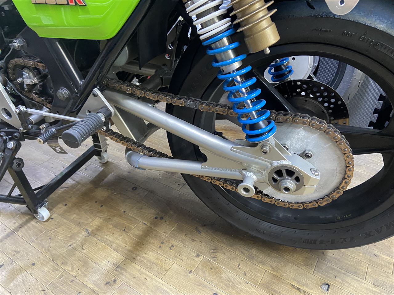 投稿日: 2021年8月2日2021年8月2日Z1000J2 S1化計画 ZRX400改スイングアーム取り付け S1仕様車用のスイングアームは、こちらのデモ車にも付いているZRX400純正品を改造したものが、現状でご用意できる最善策となっています。 今後の策も検討中ですが、とりあえず製作が間に合わないのでこれを外して使用します。 “Z1000J2 S1化計画 ZRX400改スイングアーム取り付け” の続きを読む