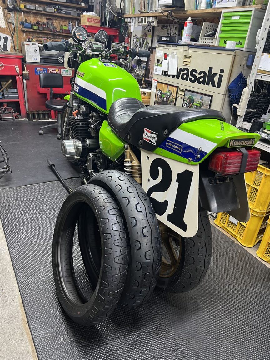リヤタイヤを交換し、チェーンもグリスアップ。