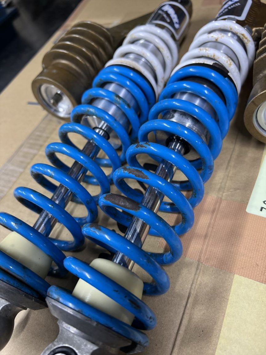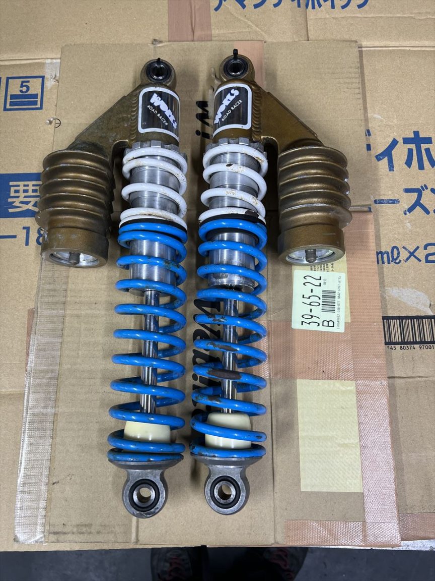 初期の、リザーバータンク付け根が溶接タイプのワークスパフォーマンスを入手されたとのことでお持ち込みです。オーバーホール済みですが外観がだいぶヤレているのでレストアします。