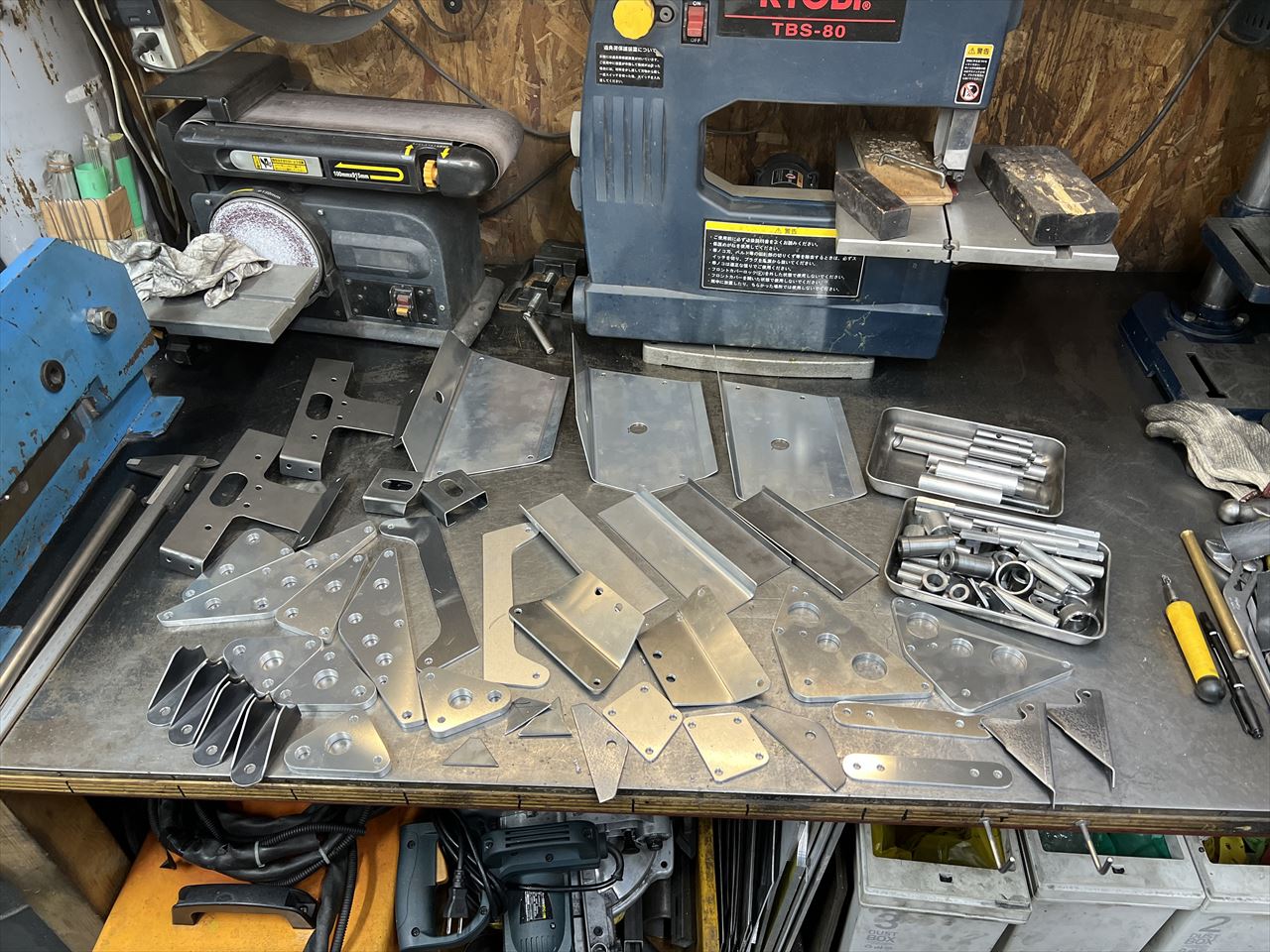 投稿日: 2021年12月19日2021年12月19日Z1000J2 Y.H様 ワークスS1仕様製作 S1パーツの製作とフレームへの溶接 S1パーツで内製している物が一通りできました。ここにあるものはS1フレーム2台分とプラスαです。 下側のオイルクーラーブラケットは溶接で組み立てます。上側のブラケットはフレームに溶接で直付けします。 “Z1000J2 Y.H様 ワークスS1仕様製作 S1パーツの製作とフレームへの溶接” の続きを読む