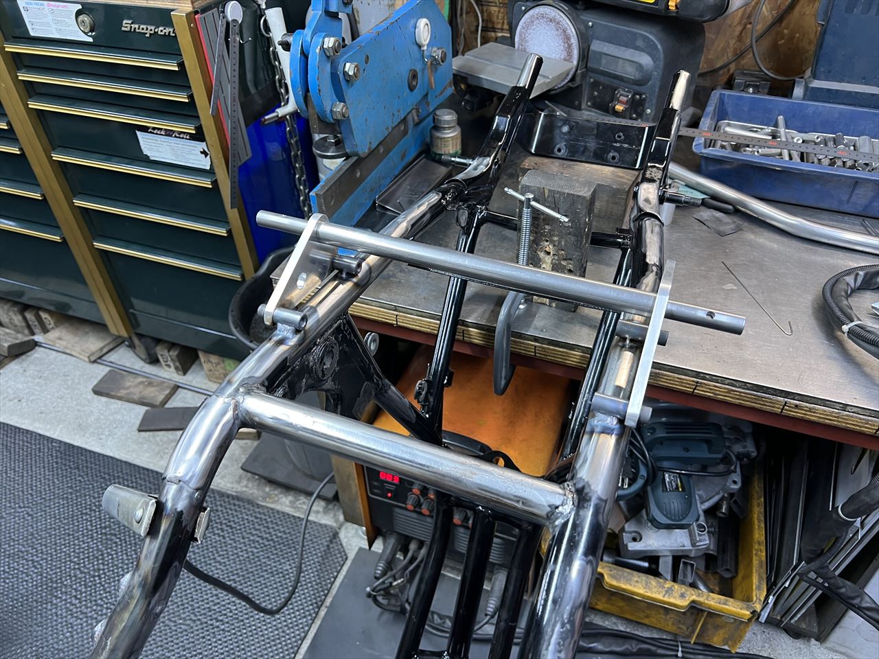 投稿日: 2021年12月20日2021年12月20日Z1000J2 Y.H様 ワークスS1仕様製作 フレーム加工 オイルクーラーステーとハンドルストッパー取り付け S1タイプのリヤリザーバータンクステーを溶接します。 ノーマルのバッテリーケースは使用しないので、右サイドカバー下側の受けを新設します。 “Z1000J2 Y.H様 ワークスS1仕様製作 フレーム加工 オイルクーラーステーとハンドルストッパー取り付け” の続きを読む