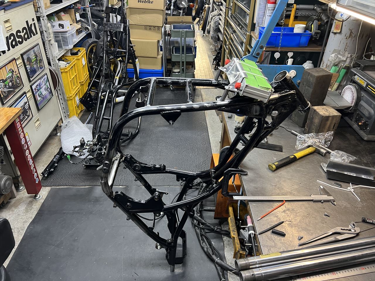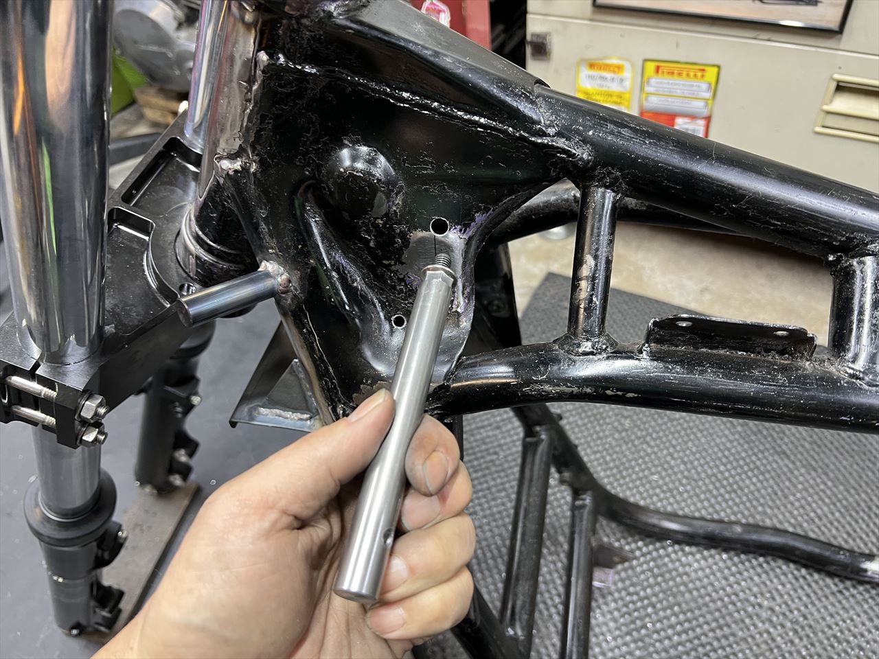 ワークス車同様にタンクマウントを上に少し上げます。フロントはガセットに穴開けします。