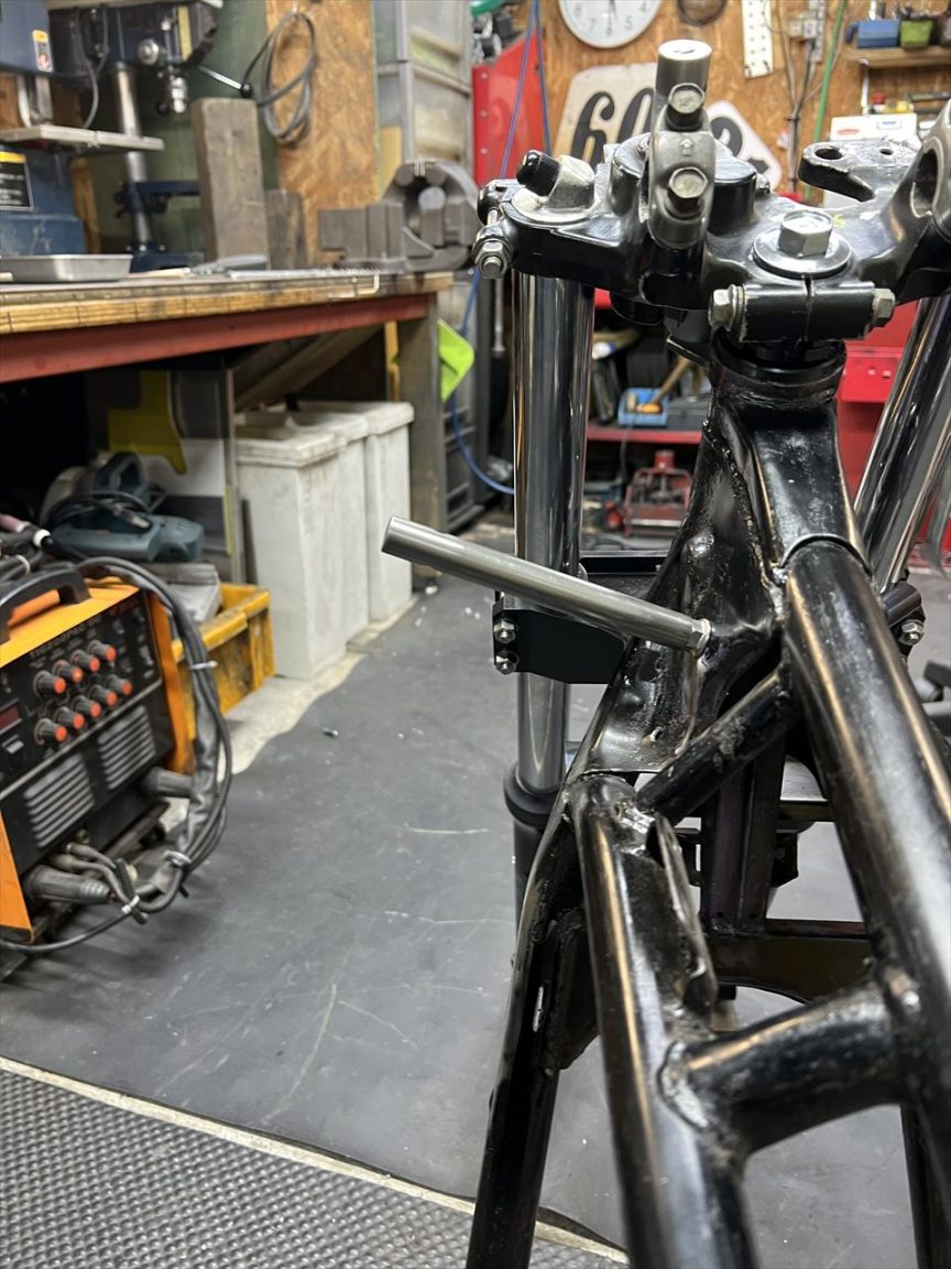 ワークスタイプのオイルクーラーブラケット、上下のステーはフレームに溶接します。