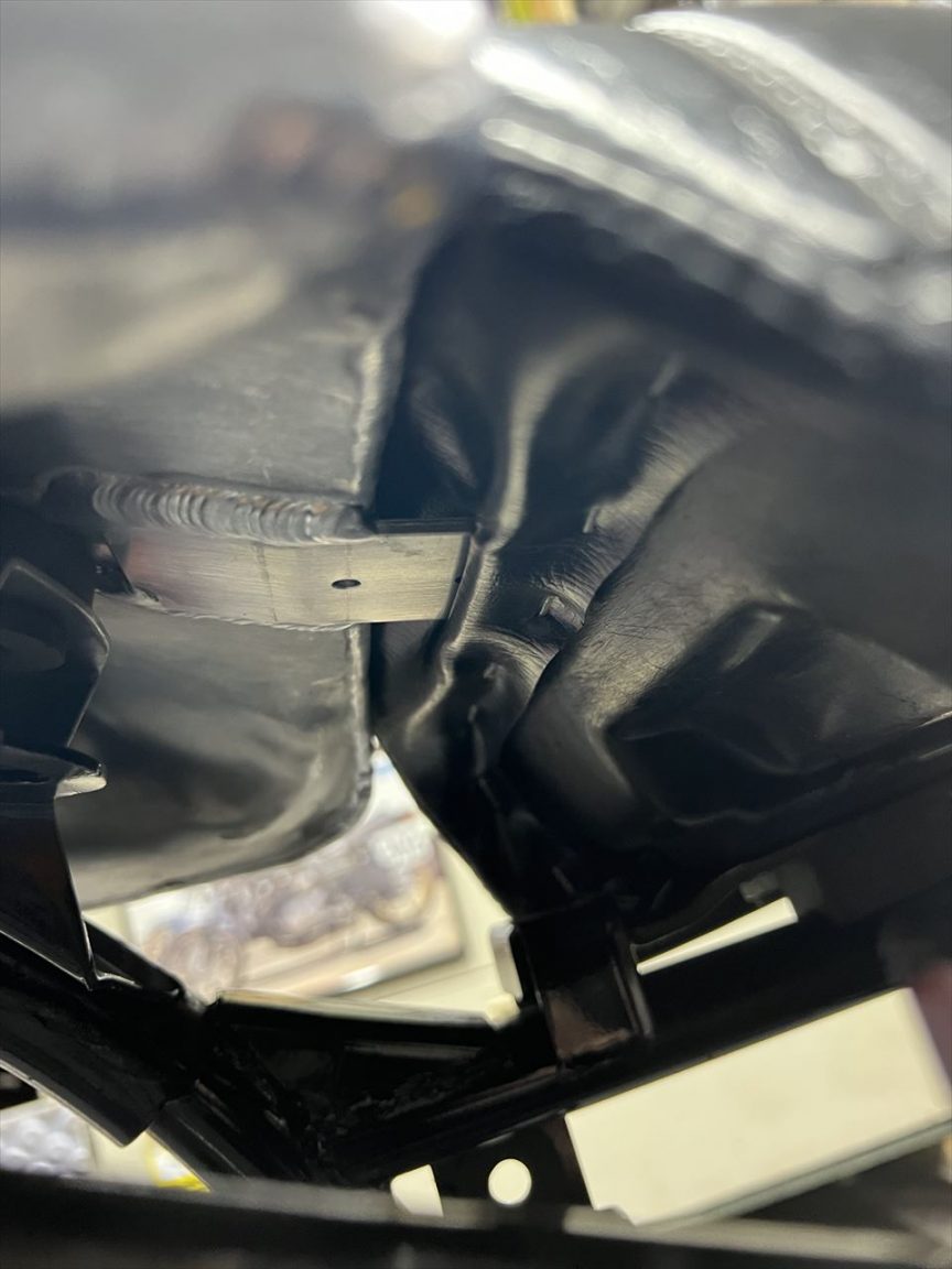 エンジンを搭載しマフラーを取り付け、サイレンサーのステーを現車合わせで取り付けます。