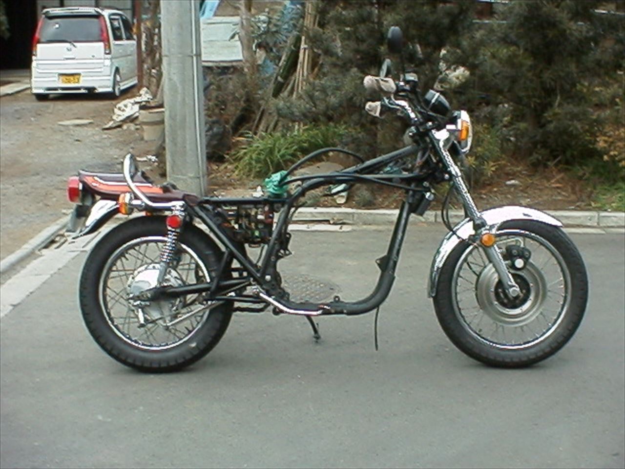 不要なステー類を削除した状態のフレームです。次に脱着式サイドスタンド用ボスの取り付けと、その周辺のクラックや傷などの修復です。