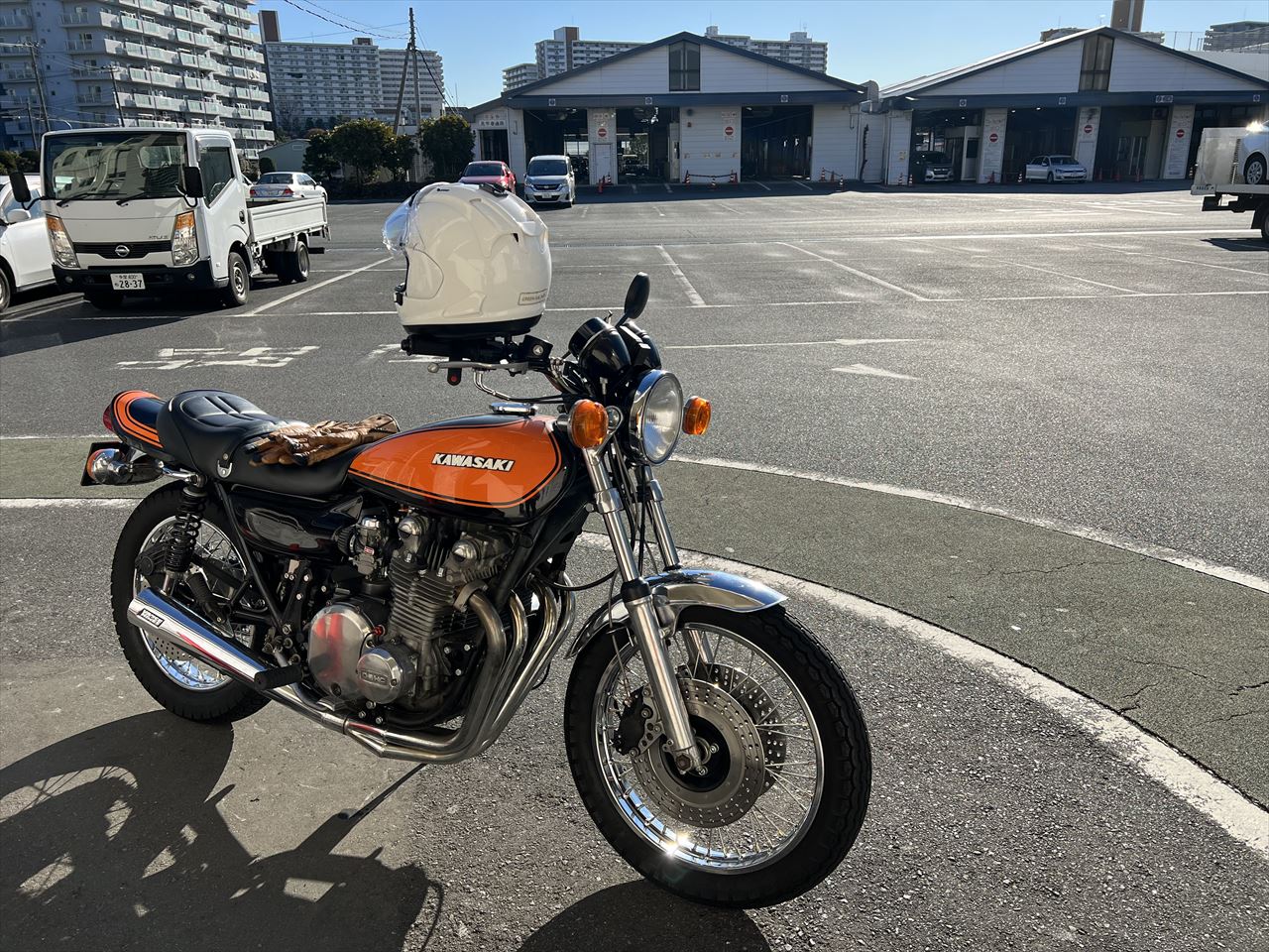オーナーさんによるコンチハンドルへの交換により車検証上の寸法が変わったので、今回の継続車検のこの時期に構造変更検査となりました。チェック走行も兼ねて自走で車検場に向かいます。