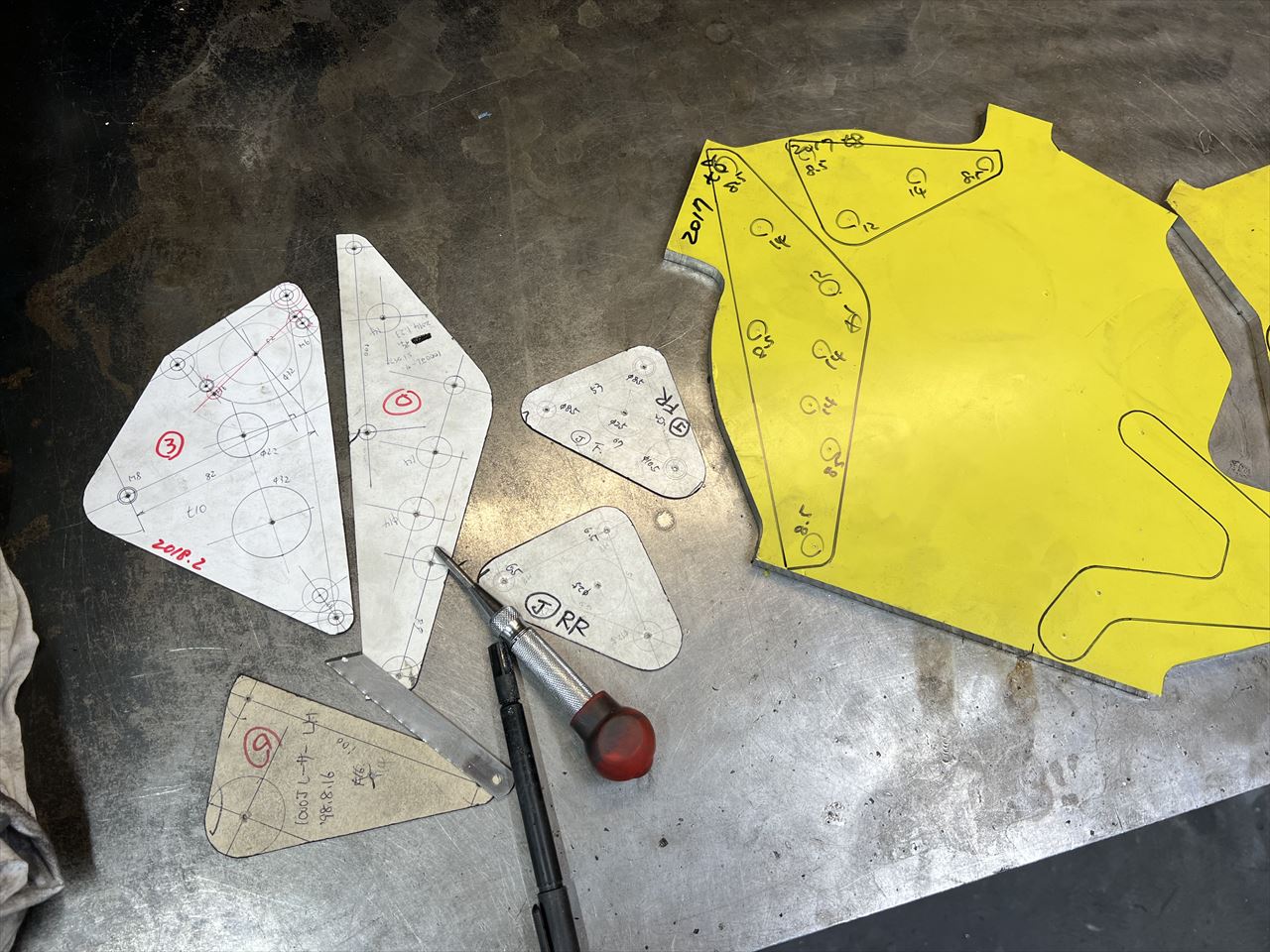小物類の製作を進めています。画像にあるのはステッププレート、エンジンハンガー、クラッチレリーズプレートです。