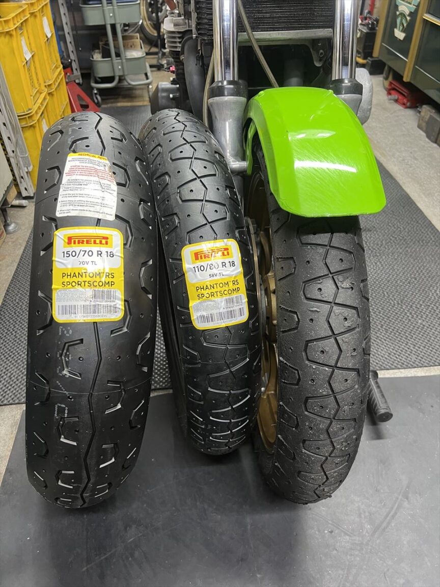 ピレリを選ぶ理由は、リヤの扁平が70であるというところ。ハイトの高い70タイヤはAMAスタイルにとって必須の条件です。レーシングコンパウンドなのでグリップも申し分ありません。