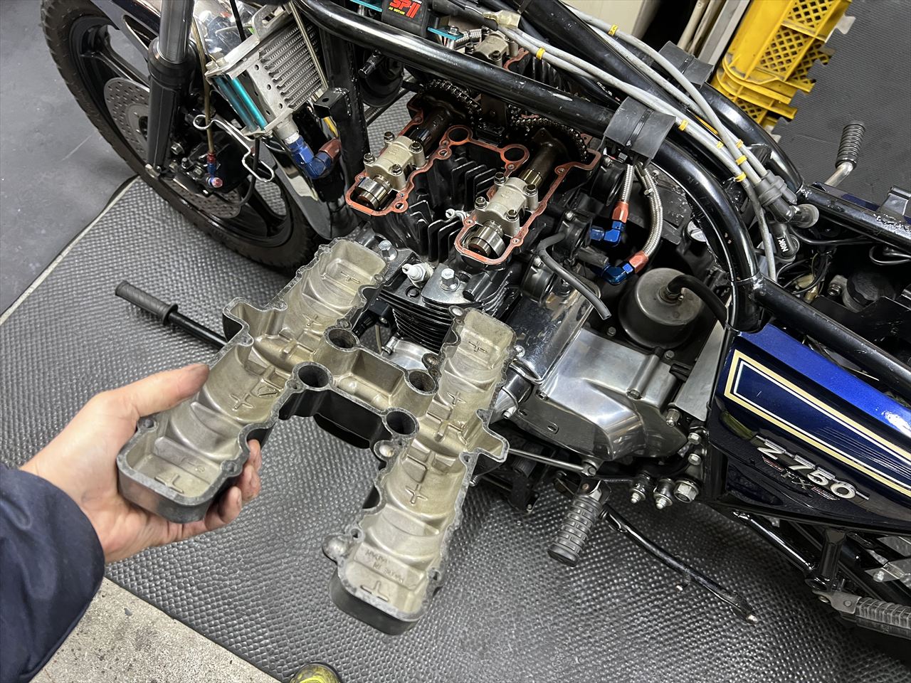 今回はエンジンの分解点検、エンジン塗装、オイルクーラー更新のご依頼です。最初にお話をいただいてから1年以上お待ちいただいており、今回ようやく作業開始します。