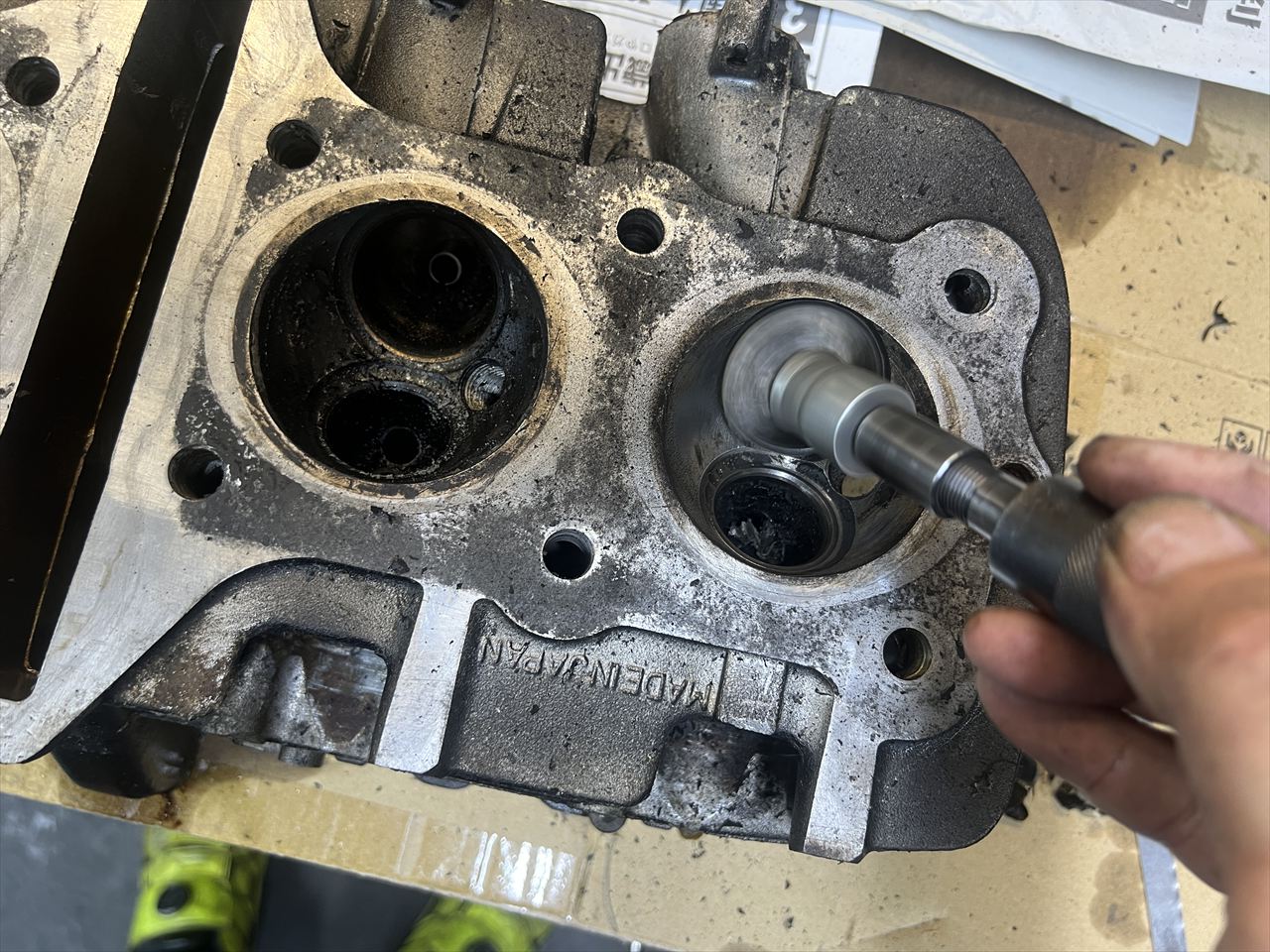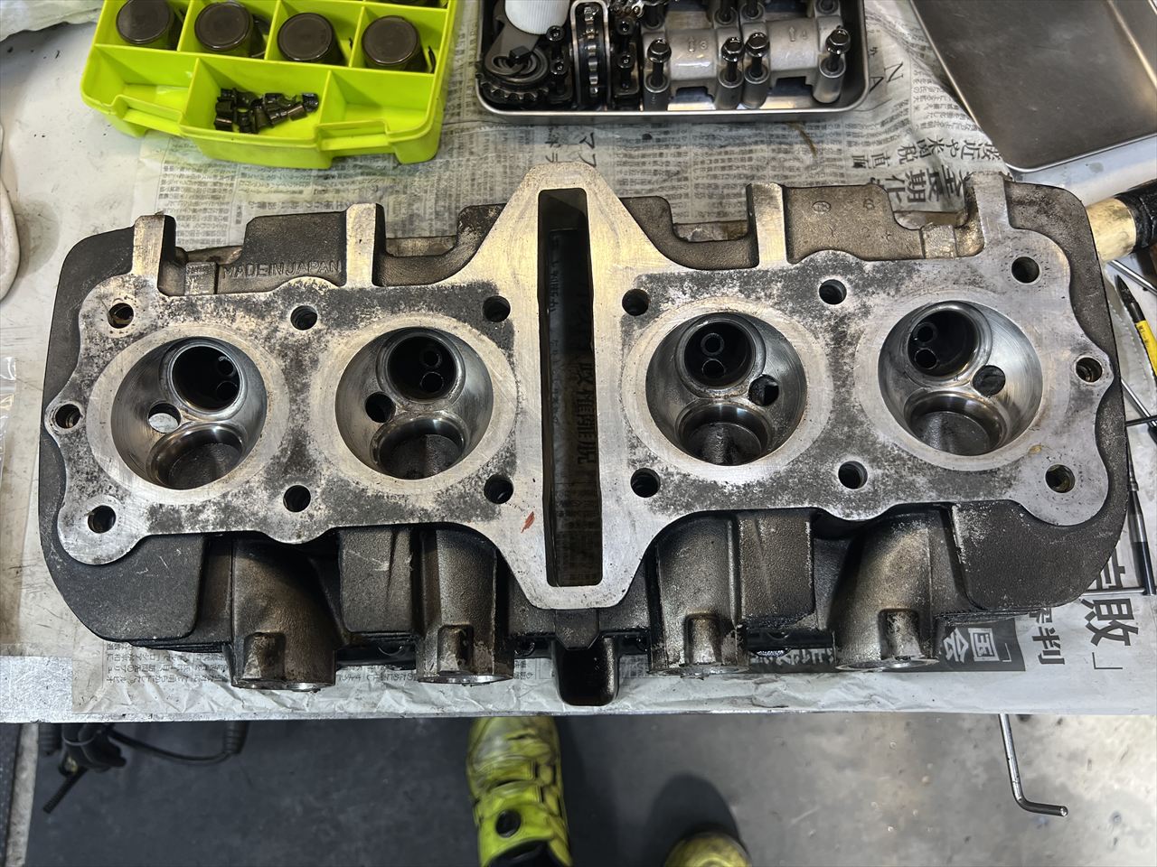 ヘッドの分解点検の続きです。燃焼室とポートのカーボンを除去します。