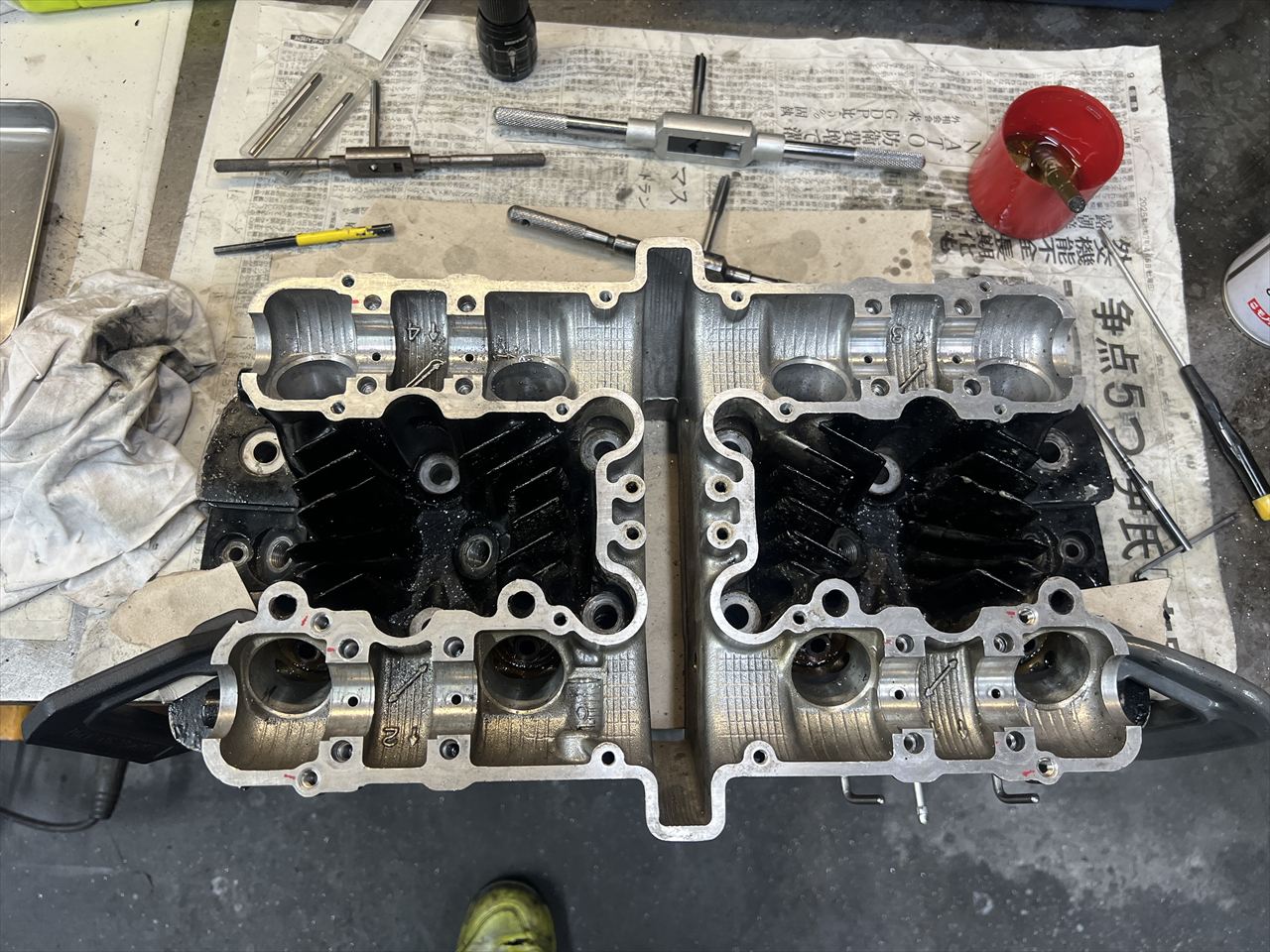 全てのヘリサート加工が完了しました。カムホルダーネジ部全16ヶ所、ヘッドカバーネジ部4ヶ所、合計20ヶ所を修理したことになります。