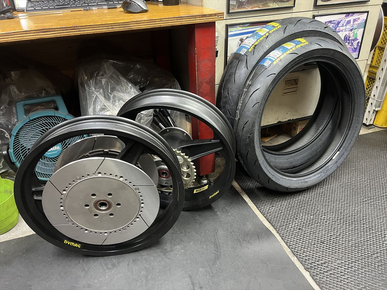 ビモータ用として使われていたDYMAGホイールを1000JのS1仕様に仕立て直します。