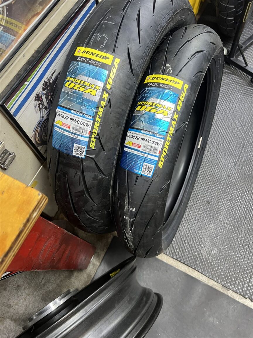 タイヤはスポーツツーリングタイプのダンロップQ5Aをチョイス。サイズは定番のフロント110/80-18 リヤ150/70-18です。