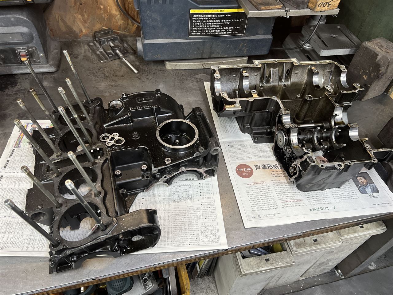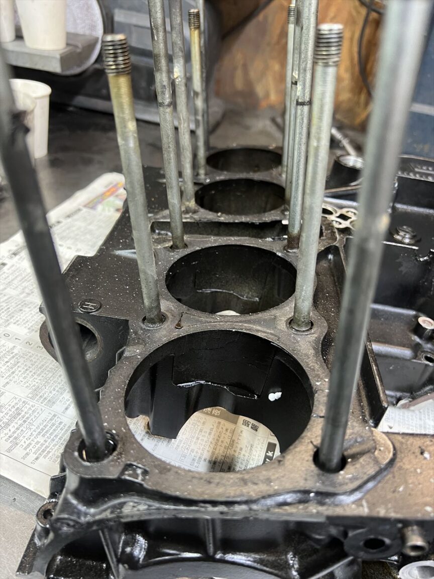 エンジンは過去に分解歴があるようですが、前回の分解からかなりの年月が経っているようで、ガスケットの固着が激しいです。