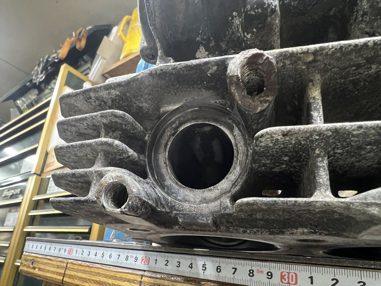 ドナーのシリンダーヘッドはエキゾーストスタッドのボスが2ヵ所壊れているので先ずは修理します。他にもバルブガイド交換、バルブシートカット、面研を行う予定。