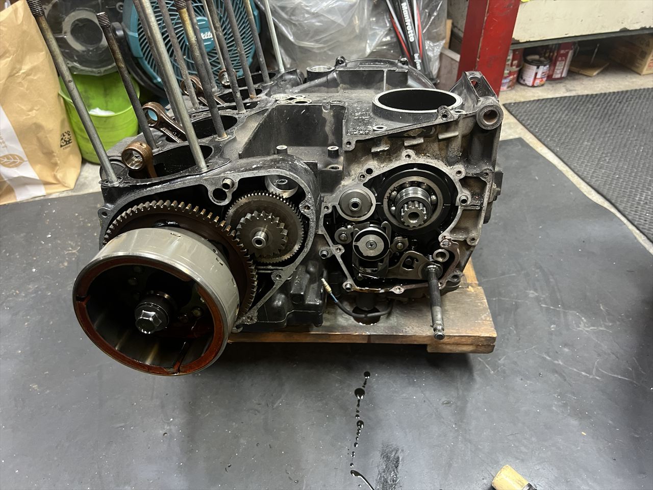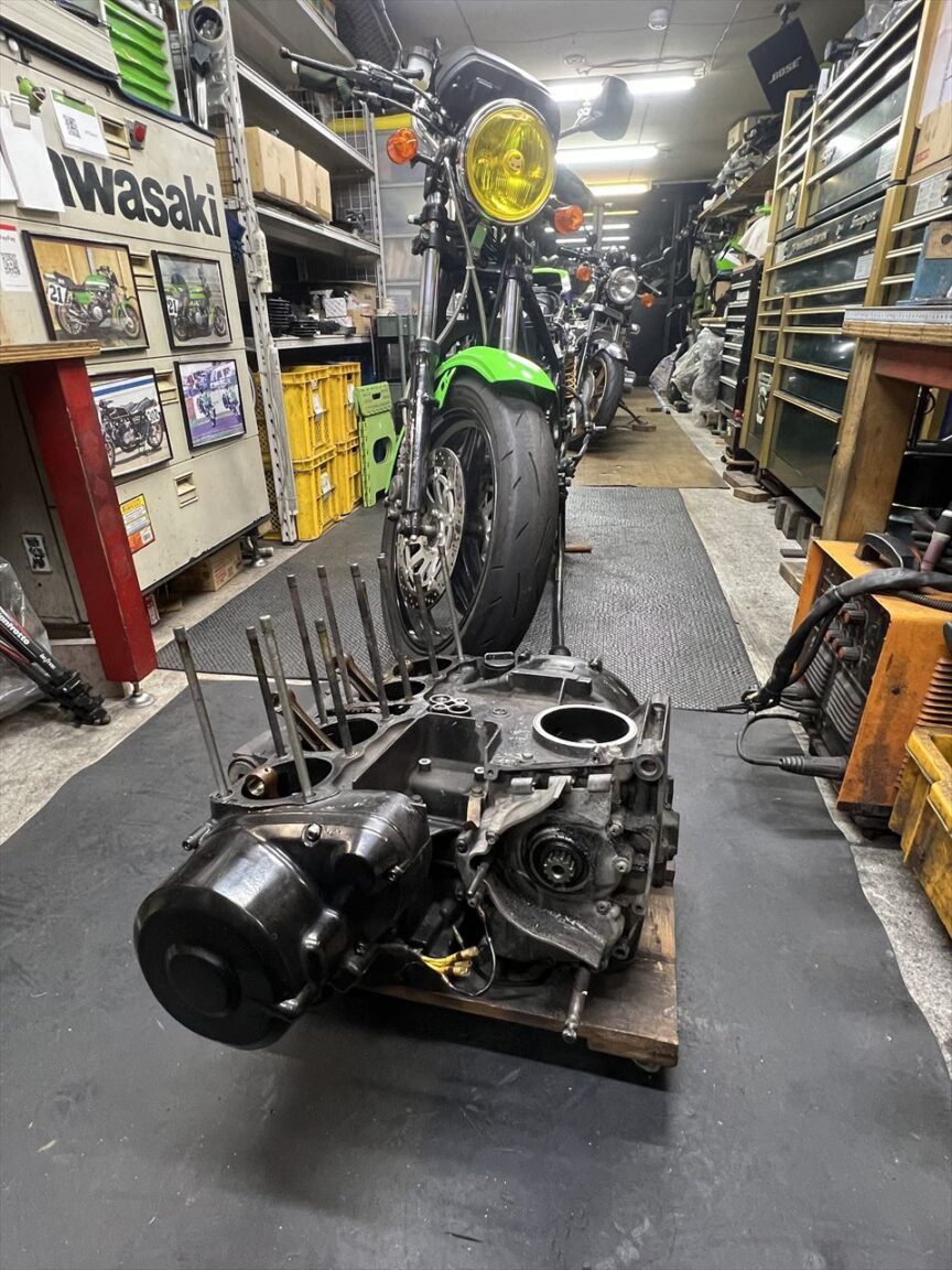 今回はエンジンオーバーホールとフレーム塗装が主な作業内容です。エンジン内部の仕様は車両入手時から不明とのことです。