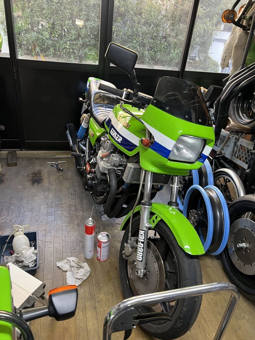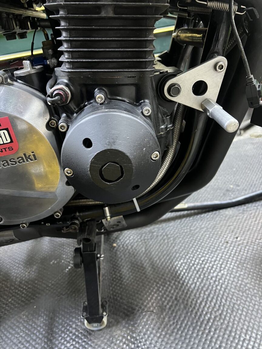 先日、スイングアームをZRX400改S1スイングアームに交換した際、リヤブレーキラインを一旦切っていたので、リヤブレーキのエア抜きをします。