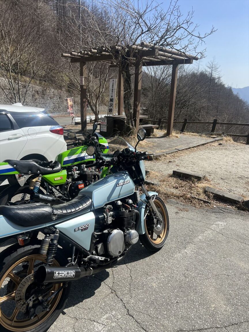 昼から出発したので、混雑を避けて高速道で上野原ICから鶴峠経由でR411の柳沢峠へ。途中、道の舗装もきれいになったところもあり、慣れた道も久しぶりに通ると結構変化しているなーという印象。体の方は路面からの衝撃があると肩が傷みますが、ワインディングは結構前と同じように乗れるなーという印象。但し、まだ右肩の可動範囲が狭い関係で、交差点の左折時にはハンドル切る際に結構傷みます。