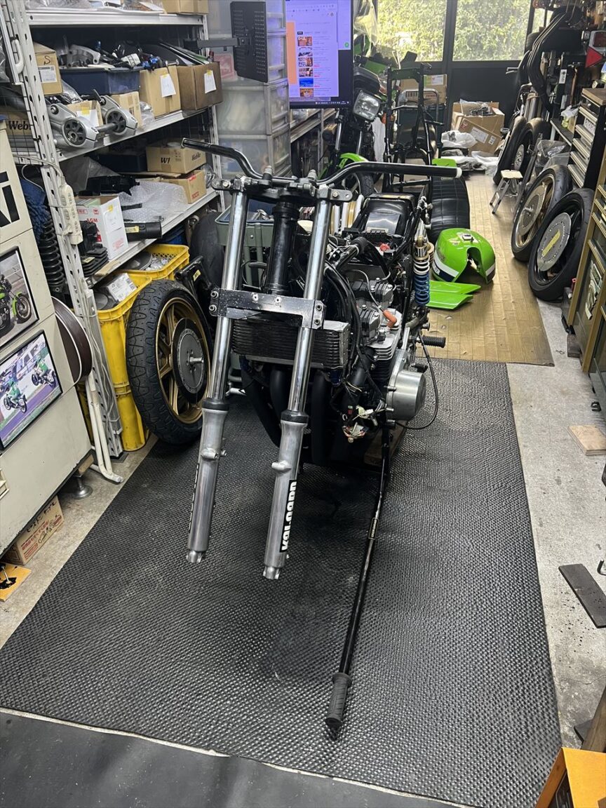 昨年10月5日の筑波サーキット最終コーナーでの転倒から5ヵ月余り。転倒で痛めた右肩の調子もだいぶ戻ってきたところで分解点検します。