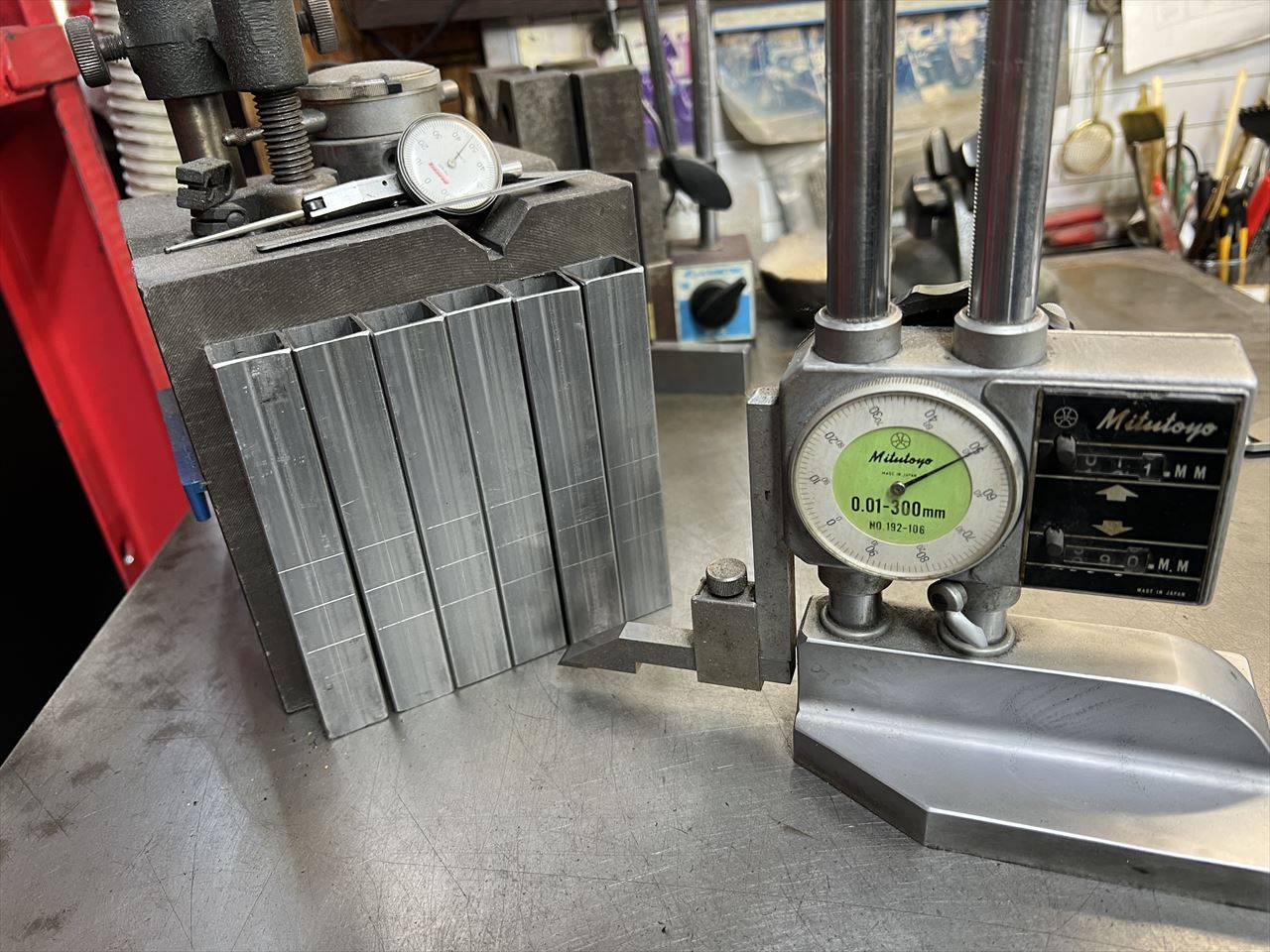 穴開けの位置をケガいてマークします。この手のケガキはハイトゲージを使って一度に行うと便利です。