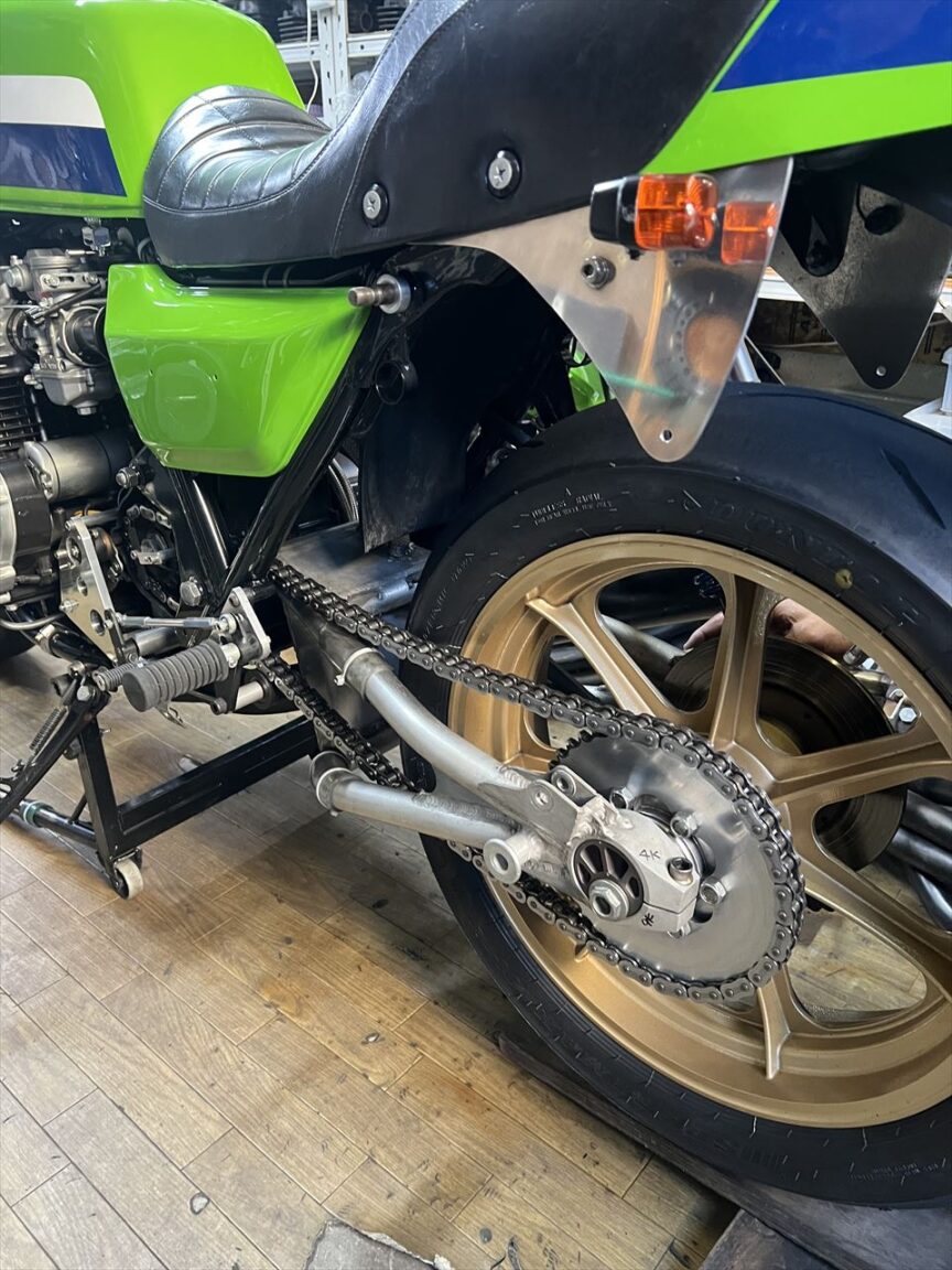 デモ車のうちの1台を販売します。ベースはZ1100-B2で、レースで使っている車両とは別の車両ですが、基本的に弊社のワークスS1仕様最新バージョンとなります。この画像は去年の継続車検時のもので、このあとスイングアームをZRX400改S1仕様に変更してから販売します。