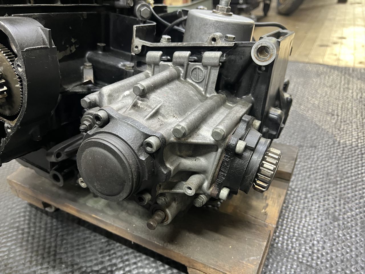 車両はバラで入手しているため、フレームはZ1R 2型ですがエンジンはZ1000STのものを使います。形状の大きな違いはこのベベルギヤBOXと、クランクケース内ミッションのアウトプットシャフトの2点です。これらはZ1R用に組み替えれば使用可能です。
