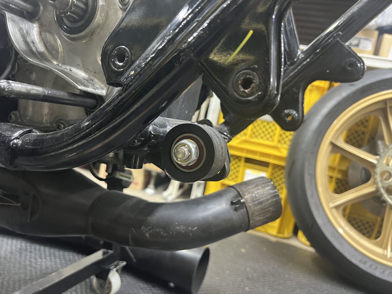 不要なブラケット類は削除しますが、チェーンガイドローラーの付いているセンスタブラケットは残しておきます。