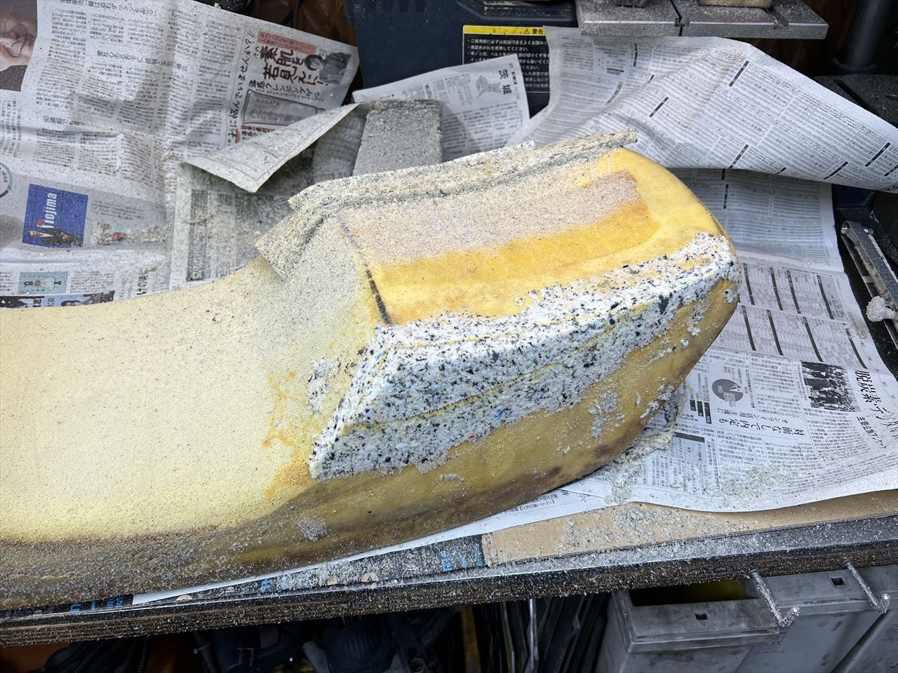 S1シート製作の続きです。フロント部分の成形が終わり、リヤの肩部分にスポンジを足した状態からスタートです。
