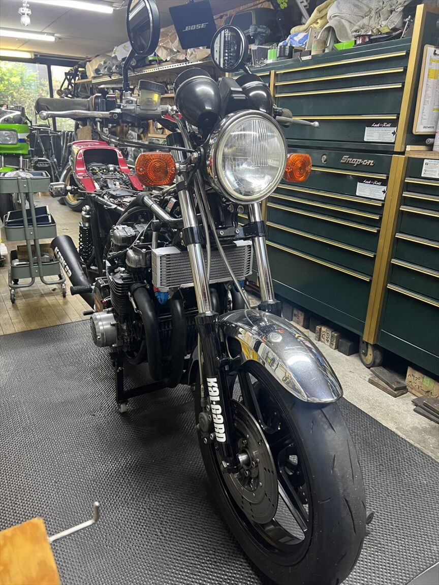 スロットル全開域で拭けが悪いとのことで、キャブをリセッティングします。マフラー変更とエアクリBOX付きからファンネルへの変更後、初めてキャブセッティングを確認します。サイドカバーは飛ばさないように外してあります。