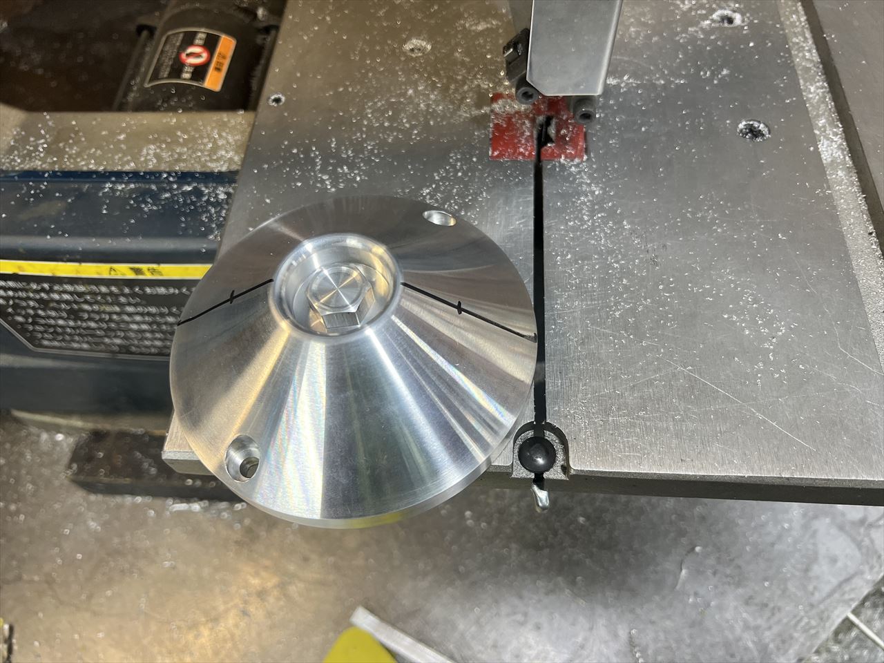 エンジンを治具にして、ホースの向きに応じて接続口をカットします。