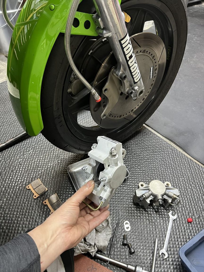 バイクの仕様は前回と同じ。前後に南ア製S1キャリパーを装着しています。