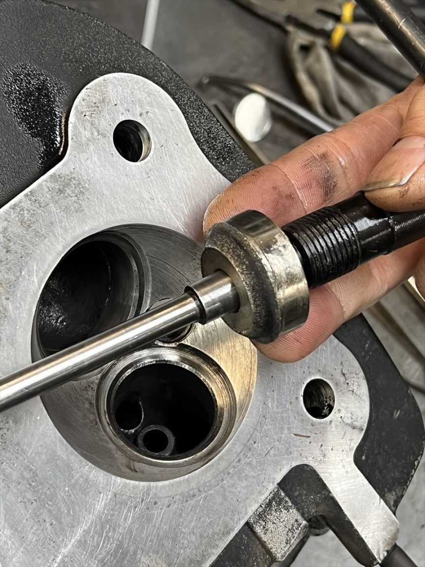 ヘッドを点検後、バルブシートがやや荒れているので軽くシートカットします。