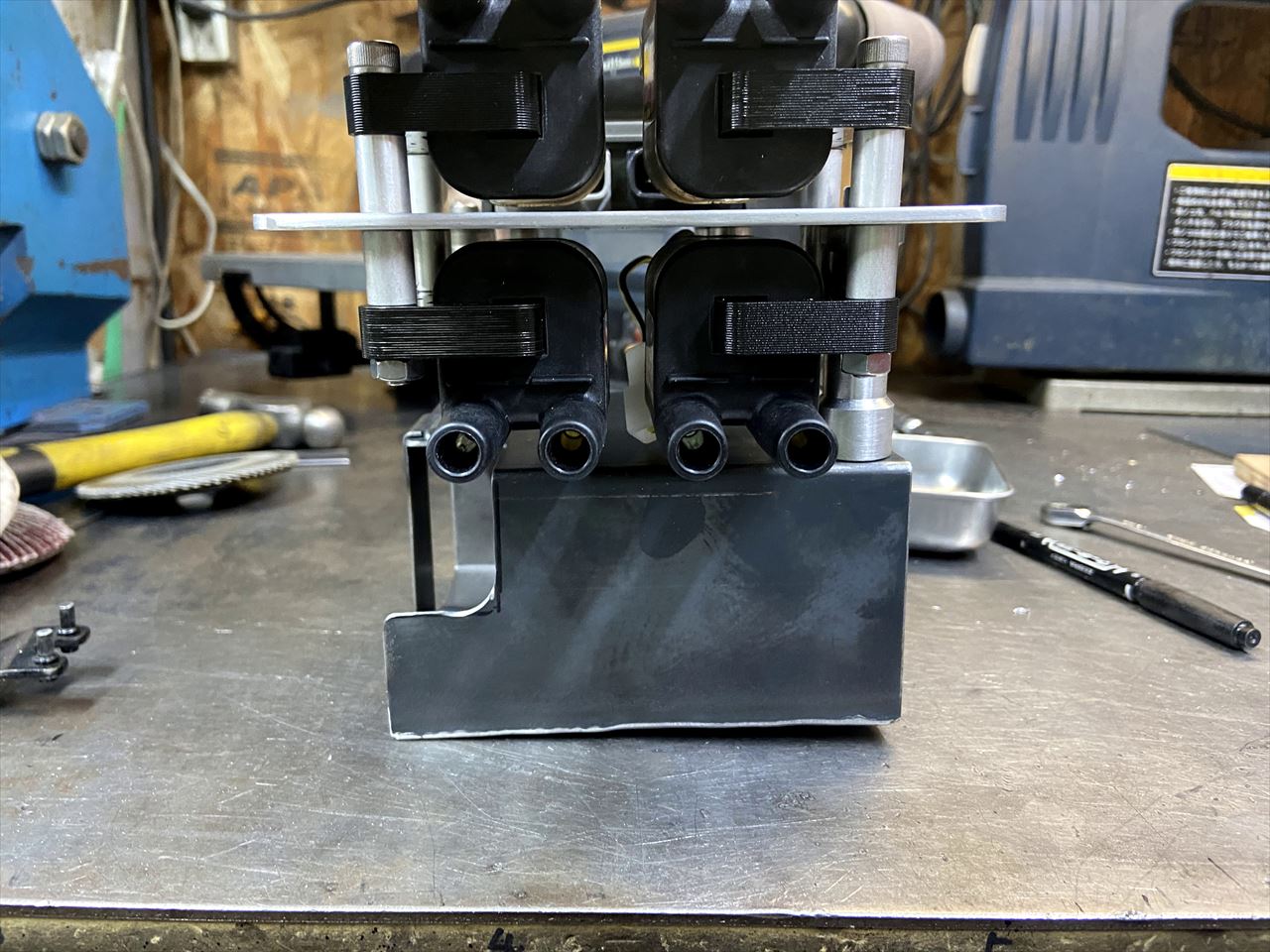 バッテリーケースができたので組み込みます。もちろんレーサーのS1には無い装備なので、今回ワンオフで製作したものです。他の電装品も、このケースの周りにマウントする予定です。
