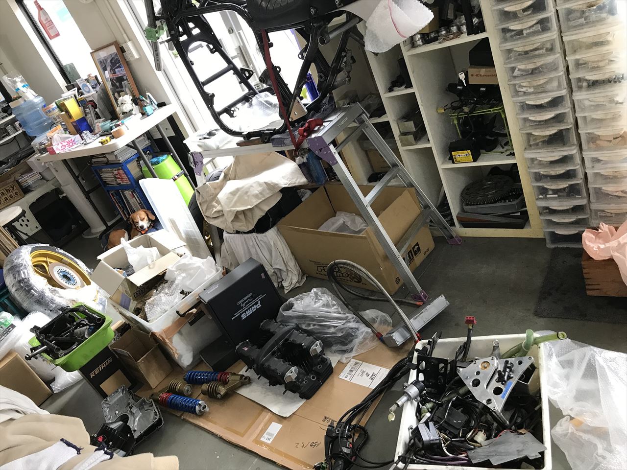 お店に到着後、フロアの中央に集められた部品を点検していきます。