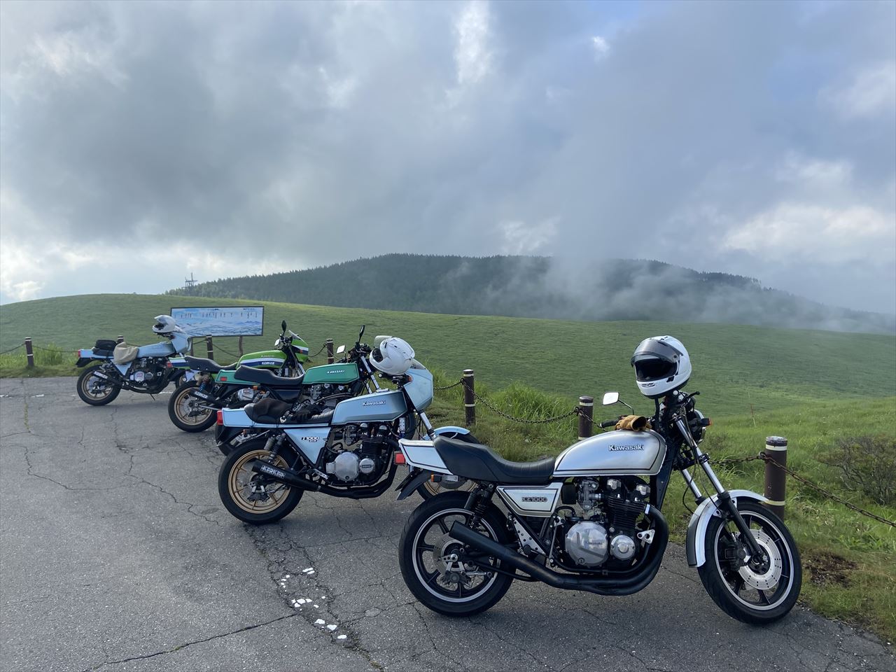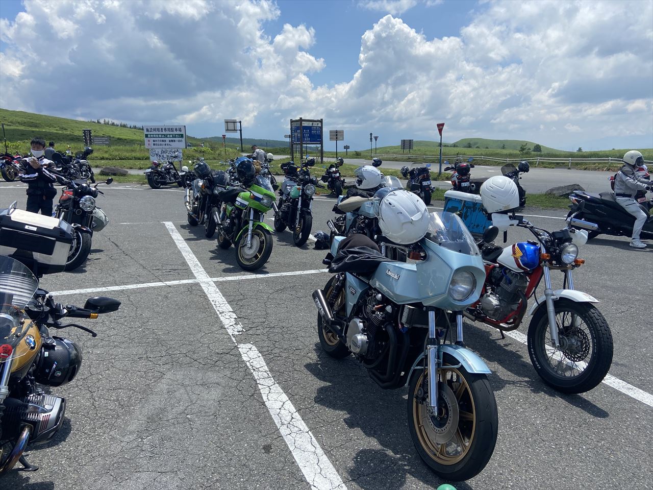 日中の暑さと混雑を避けるため、日の出前に東京を出発、5時に中央道の談合坂SAに集合して6台のツーリングは始まりました。7時前には霧ヶ峰に到着。少し雲が多いですが、涼しくて快適なツーリングが続きます。
