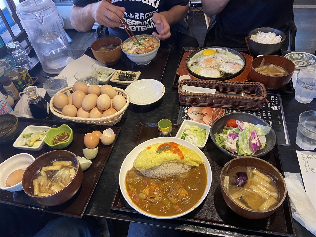 まだ8時過ぎなのでほとんどの飲食店は開いていません。そこで一旦下界に下り、予め見つけておいた朝から営業している食堂へ向かいます。こちらは自家製たまごを使った卵かけご飯で有名な「のどか牧場直営 たまご屋キッチン」さんです。