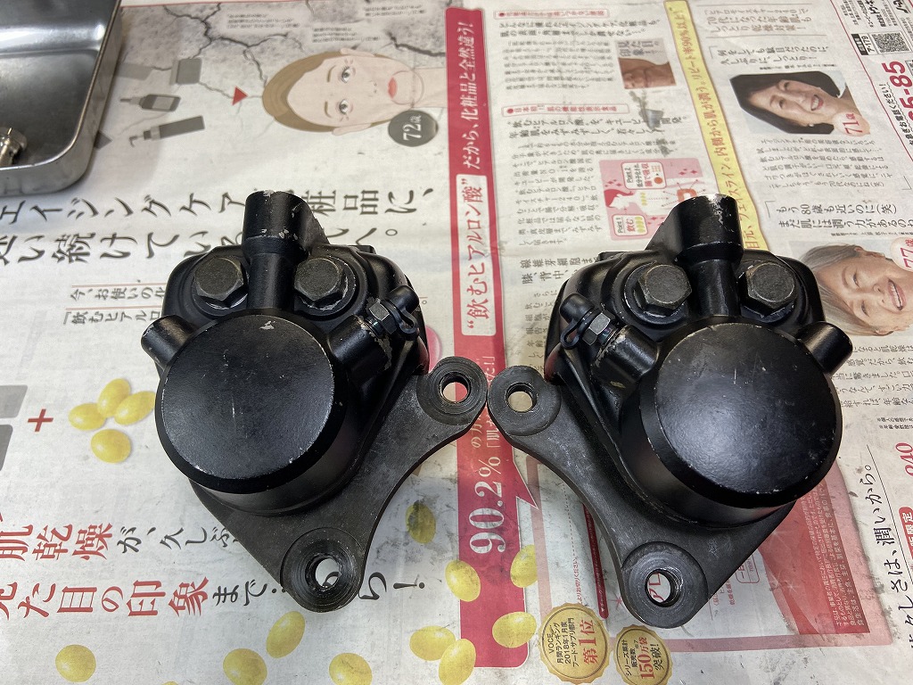 フロントキャリパーオーバーホールの続きです。純正のインナーパーツが入荷したのでアッセンブリーします。ピストン以外の消耗品は一通り揃いました。