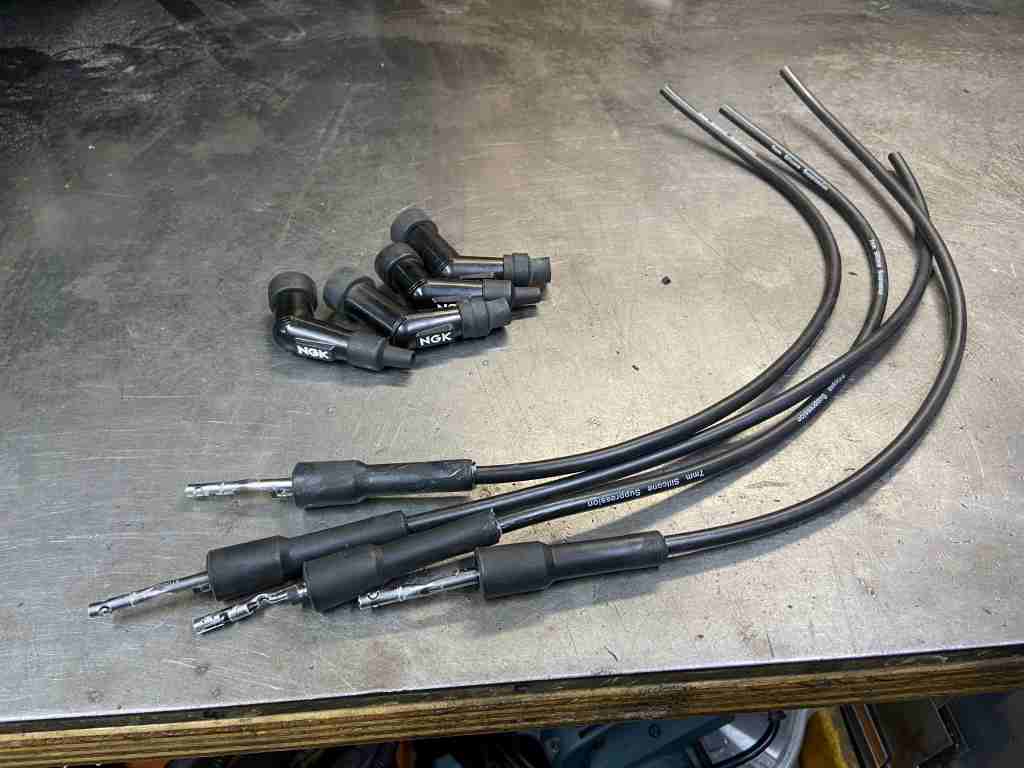 プラグコードはシリコンのφ7ミリに交換し、SP2コイル用のターミナルを接続します。キャップは既にNGKに交換済みだったので継続使用します。