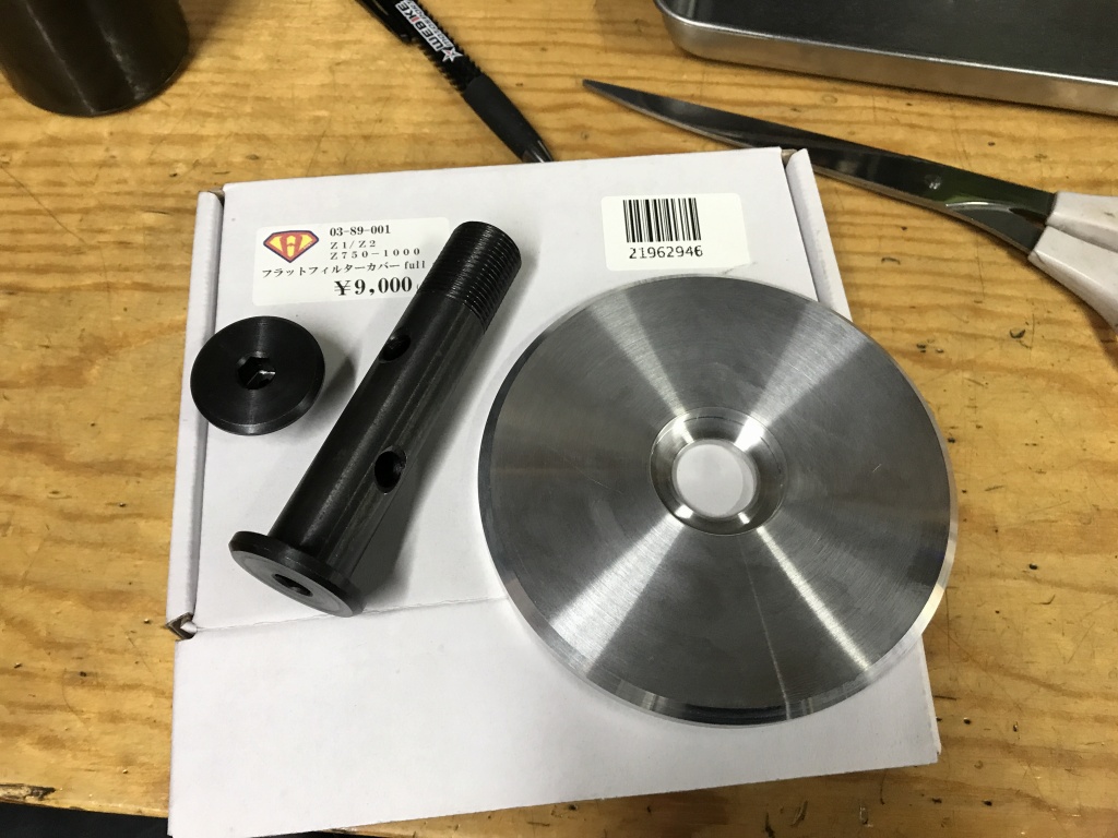 オイルフィルターカバーはマフラーと干渉するのでフラットタイプに交換します。