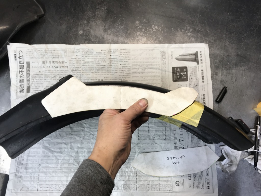 ヨーロッパ仕様のロングフェンダーが付いていましたが、短くしたいとのことで純正ショートの形状に加工します。