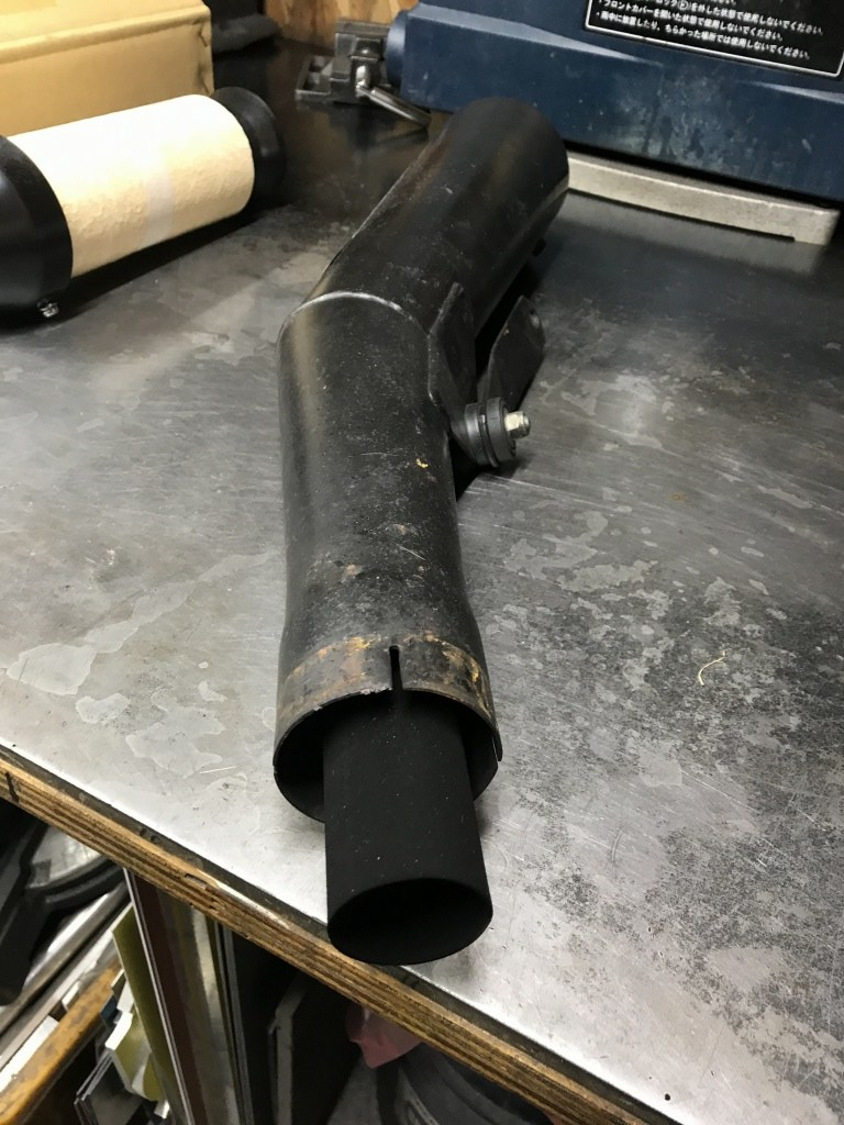 KERKERマフラーのバッフルをストリート用からレーシングミディアムに変更します。使用するバッフルはPMC製です。
