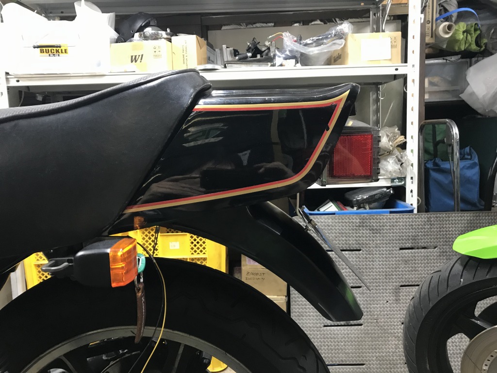 テールカウル周りのチリ合わせの続きです。穴位置を微調整し、シートとテールカウルのチリを現物で合わせます。
