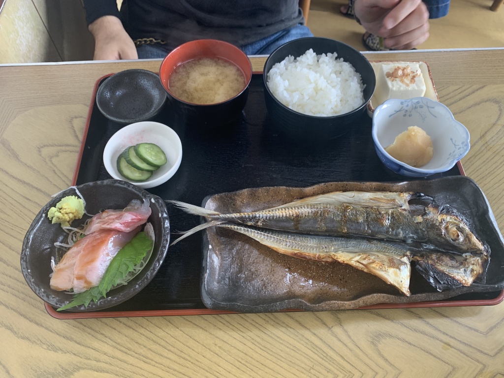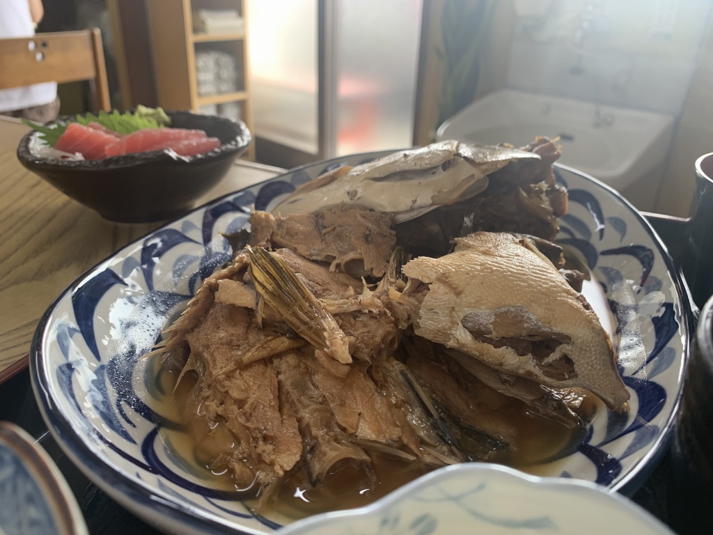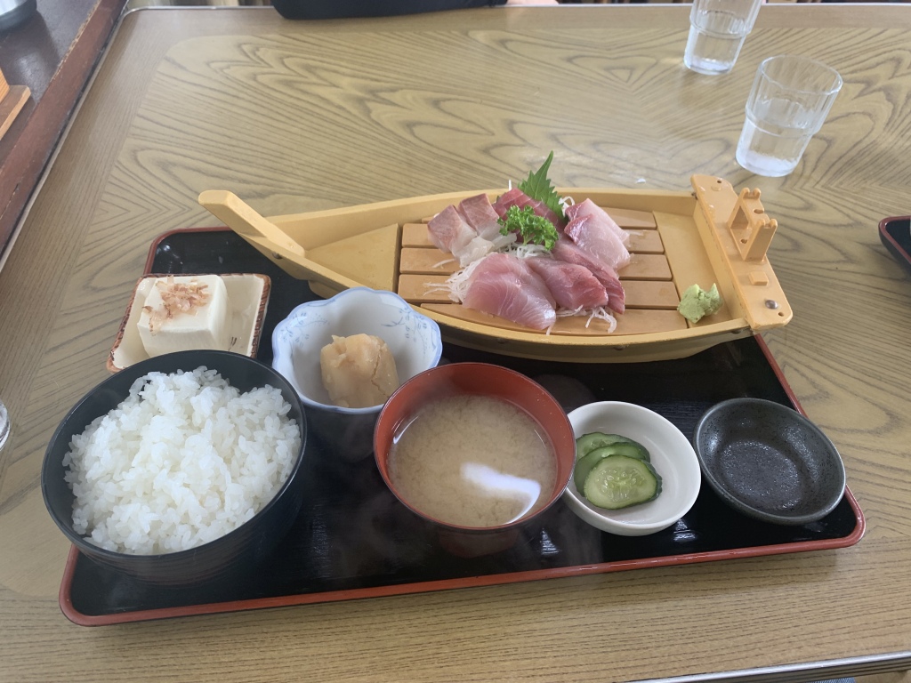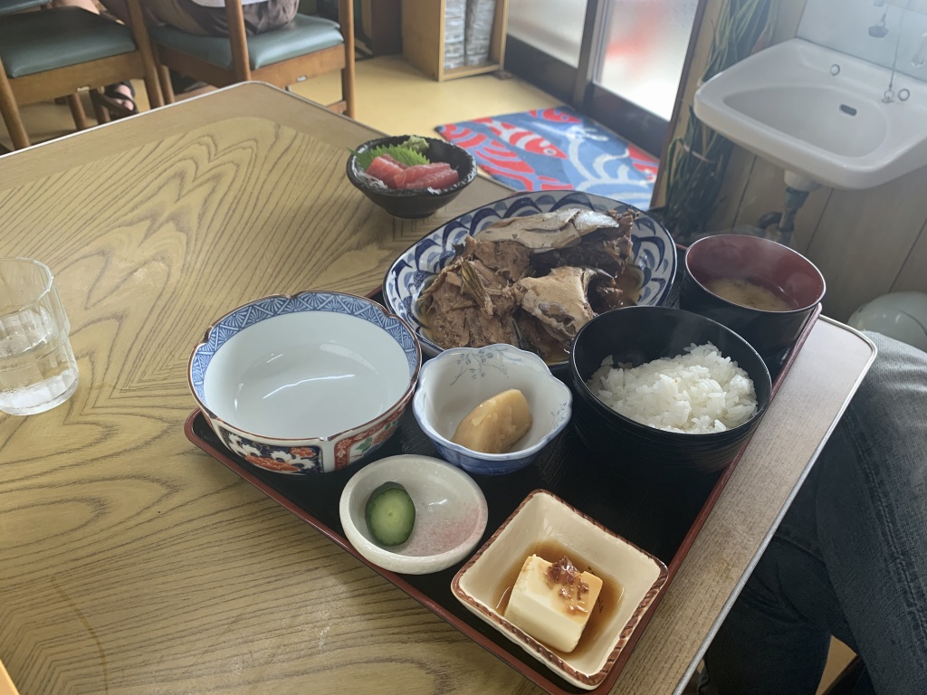 こちらは刺身盛り定食1300円。この日はマグロとヒラマサのようです。これにブリのカマの塩焼き単品を付け、みんなでシェアして食べました。