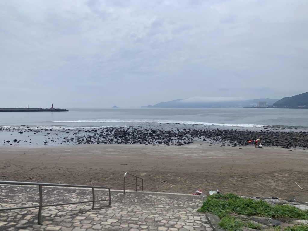 少し涼しい海風が吹いてくるのですが、湿度はかなり高め。遠くの山には雲がかかっています。