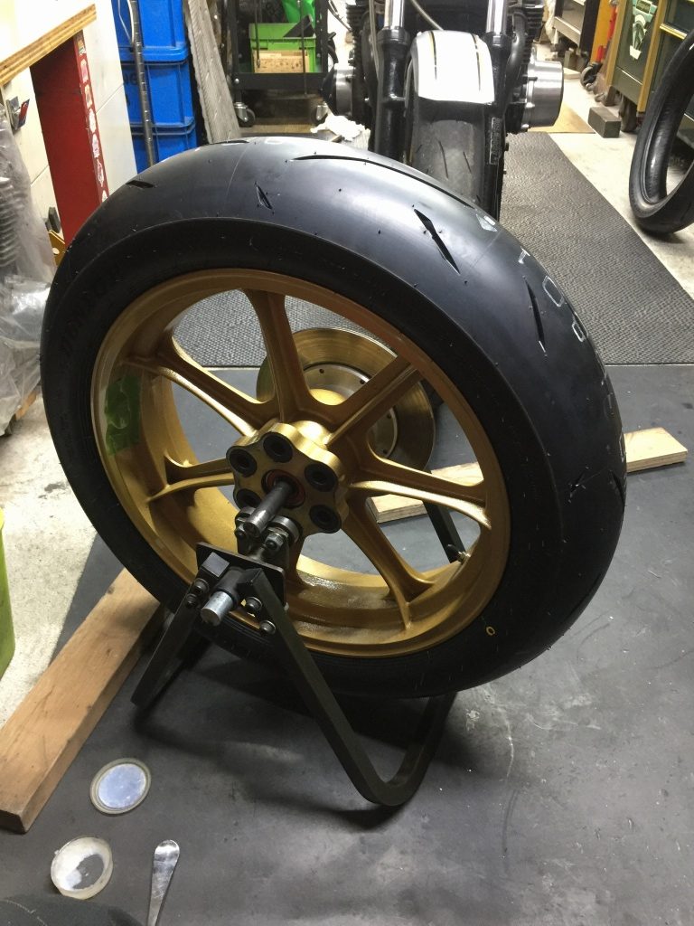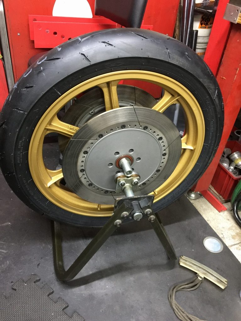 新しいタイヤを組んだらバランス取りします。