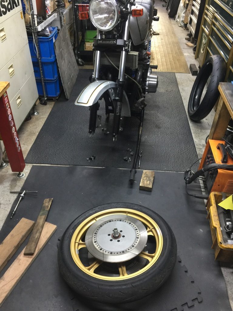 リヤホイールに続きフロントもモーリス化します。