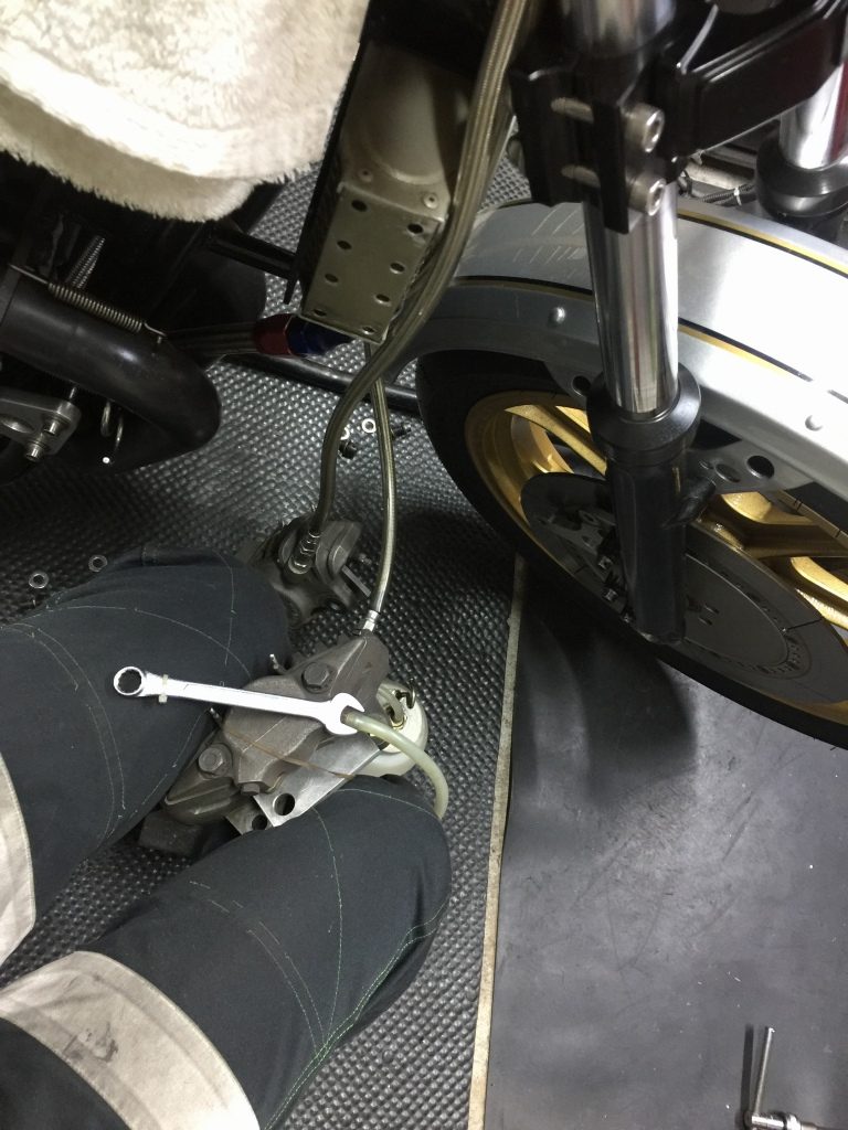 ホイールを付けたら、次はブレーキフルードを交換します。