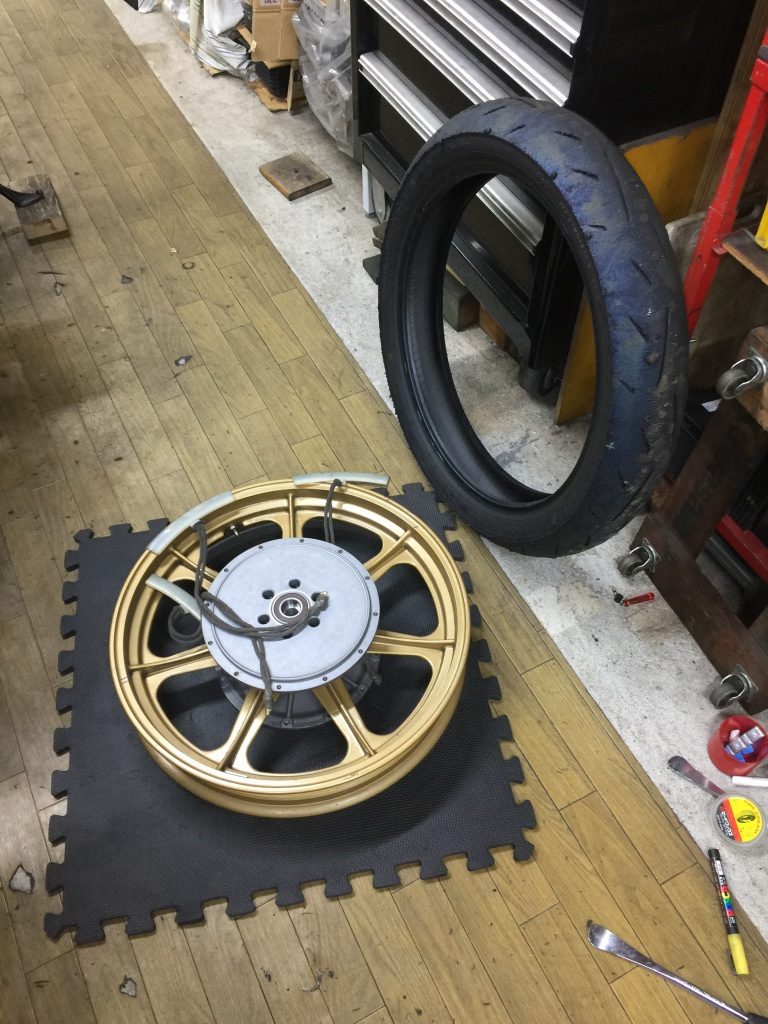 使用するホイールは6穴のハイポイントモーリスです。タイヤが古かったので練習用のα13SPに変更します。