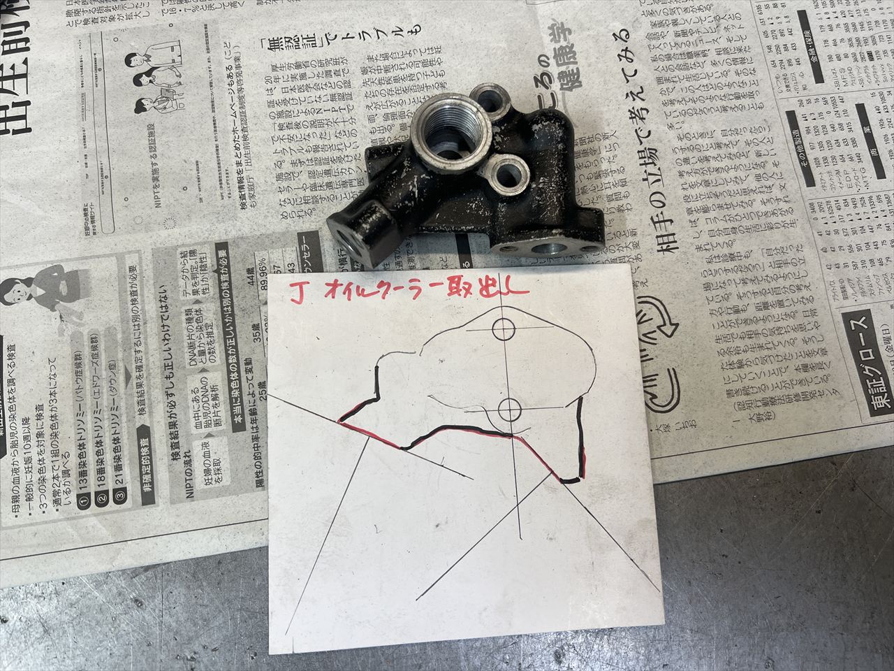 純正のオイル取出しのホース接続面をちょうどいい角度にカットします。