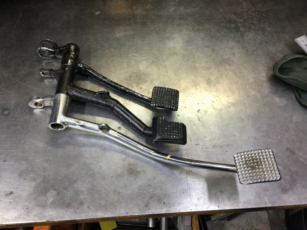 ブレーキペダルは素材を送っていただきました。これを上の二つのように短く加工します。